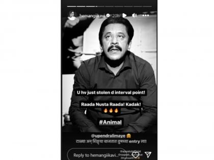 हेमांगी कवीनेही उपेंद्र लिमयेंसाठी खास पोस्ट शेअर केली आहे. हेमांगीने तिच्या इन्स्टाग्रामवरुन 'ॲनिमल'मधील उपेंद्र लिमयेंचा फोटो शेअर केला आहे.