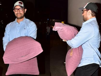एअरपोर्टवर आमिर खानच्या हातात का दिसते उशी ?