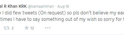 नेहमी चर्चेत आणि वादात असणारा सेलिब्रिटी म्हणजे केआरके. टविटरवर तो नेहमीच वेगवेगळया कारणांमुळे चर्चेत असतो. त्याने केलेले एक फनी टिवट पाहा : ‘ मी आज बरेच टविट केले आहेत. पण, माझ्या प्रत्येक टविटचा अर्थ लावत बसू नका. मी कधीकधी माझ्या मनाच्या विरूद्ध जाऊनही टविट करत असतो.