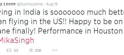 पॉर्नस्टार ते अभिनेत्री असा प्रवास करणारी सनी लिओनीचे टिवट्सही काही कमी नाहीत. आता हेच पाहा ना, तिलाही इंग्रजीचे थोडेफार धडे मिळाले पाहिजेत, असेच यावरून वाटते आहे. ती लिहिते,‘अमेरिके त विमान चालवणं हे भारतात विमान चालवण्यापेक्षा फार कठीण आहे. आभारी आहे की, मी हॉस्टनला उतरले.’ या तिच्या टविटची फॅन्सनी खूप मजा उडवली होती.