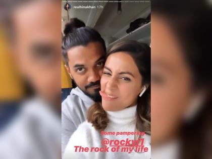 हिना खानने बॉयफ्रेंड रॉकी जयस्वालसोबत फोटो स्टोरीमध्ये शेअर करीत लिहिले की, सम पॅपेरिंग (थोडेसे लाड).