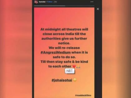 कोरोना व्हायरसचा वाढता धोका बघता, अनेक चित्रपटांनी रिलीज डेट लांबणीवर टाकली. अनेक चित्रपटांचे शूटींगही पुढे ढकलण्यात आले. पण दिग्दर्शक होमी अदजानिया यांनी अशास्थितीत ‘अंग्रेजी मीडियम’ रिलीज करण्याची जोखीम पत्करली. गत 13 मार्चला हा सिनेमा रिलीज झाला. पण याचदरम्यान अनेक राज्यांनी कोरोना व्हायरसच्या पार्श्वभूमीवर मॉल, थिएटर्स 31 मार्चपर्यंत बंद करण्याची घोषणा केला. यामुळे ‘अंग्रेजी मीडियम’चा बिझनेस एकदम खाली आला. अशात दिग्दर्शक होमी अदजानिया यांनी ‘अंग्रेजी मीडियम’ हा सिनेमा पुन्हा रिलीज करण्याची घोषणा केली आहे. ‘पुढच्या निर्देशापर्यंत भारतात थिएटर्स बंद करण्यात आले आहेत. त्यामुळे स्थिती सामान्य होताच आम्ही पुन्हा ‘अंग्रेजी मीडियम’ रिलीज करू. तोपर्यंत सुरक्षित राहा,’ असे होमी अजदानिया यांनी सोशल मीडियावरून जाहिर केले.