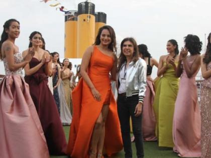 ‘ ॉलिवूडची दबंग गर्ल’ सोनाक्षी सिन्हा ही तिच्यातील बिनधास्त आणि बोल्ड अंदाजासाठी ओळखली जाते. ‘अकिरा’ चित्रपटानंतर हा तिचा अॅटिट्यूड सर्व जगासमोर आला. नुकतेच तिने ‘लॅक्मे फॅशन वीक’ साठी बोल्ड आणि सेक्सी अंदाजात रॅम्पवॉक केले. रॅम्पवॉक  म्हटल्यावर डोळयासमोर येतो तो एक भलामोठा स्टेज ज्यावर सौंदर्यवती रॅम्प करत असतात. मात्र, सोनाक्षीने रॅम्पवॉक केला तो क्रुझ शीपवर. ‘कोस्टा’ या आंतरराष्ट्रीय लक्झरी शीपवर हा फॅशन शो झाला. यात सोनाक्षीने घातलेला गुलाबी गाऊन अन् तिची मनमोहक अदा सर्वांचे लक्ष वेधून घेत होती. तसेच वॉक करतानाचा तिचा अंदाज उपस्थितांना घायाळ करणारा होता. हा वॉक तिने मोनिशा जेसिंग हिच्यासाठी  केला होता.