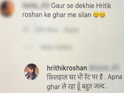 ‘हृतिक रोशन के घर में सीलन?’ ही चाहतीची कमेंट हृतिकच्या नजरेतून सुटली नाही. त्यानं यावर लगेच उत्तर दिलं.