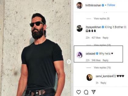 हृतिकने इन्स्टाग्रामवर त्याचे काही फोटो शेअर केलेत. काळी टी-शर्ट, काळी जीन्स, पोनी टेल आणि डोळ्यांवर गॉगल असा त्याचा स्वॅग पाहून सबाला राहावलं नाही. तिने लगेच हृतिकच्या या फोटोंवर कमेंट केली. Why hello असं तिने कमेंट करत लिहिलं.