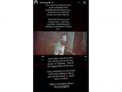 हुमा कुरेशीने तिच्या पोस्टमध्ये लिहिलं आहे की, "बनारसचा एक मुलगा, जो कोणाच्याही ओळखीशिवाय आणि पाठिंब्याशिवाय मुंबईत आला... मला तुझ्यावर आणि तुझ्या या प्रवासावर खूप अभिमान आहे. मागील १० वर्षांपासून तू ॲक्टिंग कोच म्हणून खूप मेहनत घेतली. स्वतः शिकलास, इतरांना शिकवलंस आणि आज तू 'थामा' या वर्षातील सर्वात मोठ्या चित्रपटांपैकी एकामध्ये मोठ्या पडद्यावर दिसत आहेस. हे तुझ्या मेहनतीचं आणि जिद्दीचं यश आहे... ही फक्त सुरुवात आहे. तुला अजून खूप काही मिळवायचं आहे. नेहमी यशाच्या शिखरावर राहा!"