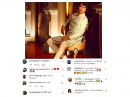 ट्रेडिशनल इंडियन ड्रेसमध्ये फोटो शेअर करताना इब्राहिमने लिहिले की, "दिवाळी संपली आहे, आता कॅप्शन नाही मिळत आहे.'' . इब्राहिमच्या फिमेल चाहत्यांना हे फोटो इतके आवडले आहेत की एक चाहतीने त्याला कमेंट्समध्ये लग्नासाठी प्रपोज करत, खूप रोमँटिक ओळी लिहिल्या आहेत.