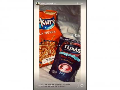 इलियाना डिक्रुजने इन्स्टाग्राम स्टोरीवर फोटो शेअर केला आहे. हा फोटो तिने रात्री पाऊण वाजताच्या सुमारास शेअर केला आहे. यामध्ये कुरकुरेचं पॅकेट आहे आणि एक tums antacid चं पॅकेट आहे. यासोबत इलियानाने लिहिले, 'तुम्ही प्रेग्नंट आहात हे न सांगता प्रेग्नंट आहात सांगा (tell me you are pregnant without telling me you are pregnant) . या कॅप्शनसोबत तिने दुसरी प्रेग्नंसी थेट जाहीर केली आहे.