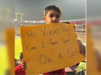 सध्या सोशल मीडियावर एका गोड चिमुकल्याचा फोटो व्हायरल होत आहे. या चिमुकल्याने हातात एक बोर्ड घेतला असून त्याने, 'हाय विराट काका.. मी वामिकाला डेटवर घेऊन जाऊ शकतो का?' असा प्रश्न विचारला आहे.