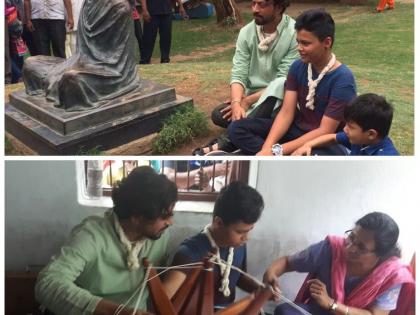 ब लिवूड स्टार इरफान खान आणि त्याचा मुलगा अयान खान यांनी आजचा फादर्स डे आगळ्या-वेगळ्या पद्धतीने साजरा केला. दोघेही आज अहमदाबादेतील साबरमती आश्रमात पोहोचले. राष्ट्रपिता महात्मा गांधींच्या या आश्रमात इरफान व अयान यांनी बराच वेळ घालवला. बापूंच्या अनेक आठवणी, त्यांच्या वस्तू, त्यांचा चरखा अशा अनेक वस्तू त्यांनी बघितल्या. एवढेच नाही तर स्वत: चरख्यावर सूत कताई सुद्धा केली. साबरमती आश्रमात घालवेल्या क्षणांचे काही फोटो इरफानने टिष्ट्वटरवर शेअर केले आहेत. तुम्ही बघा तर!!