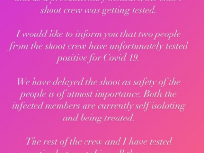 जॅकलिनने लिहिले, आम्ही एका ब्रँडचे शूटिंग करणार होतो. यासाठी आम्ही सगळ्या क्रू मेंबर्सची कोरोना टेस्ट केली. त्यात माझ्या क्रू मधले दोन लोक COVID-19 पॉझिटिव्ह मिळाले. आम्ही शूटिंग पुढे ढकलले आहे कारण लोकांची सुरक्षा अत्यंत महत्वाची आहे. जे COVID-19 पॉझिटिव्ह मिळाले आहेत, त्यांच्यावर उपचार सुरु आहेत.