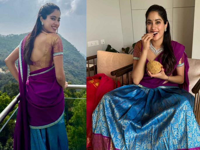 जांभळी साडी, स्टायलिश ब्लाऊज, सिव्हर ज्वेलरी, कपाळावर टिकली आणि मोकळे केस अशा पारंपरिक लूकमध्ये जान्हवीने फोटो शेअर केला आहे. यामध्ये ती कमालीची सुंदर दिसत आहे. तिच्या हातात तिरुपतीचा प्रसाद म्हणजेच लाडू आहे. जान्हवी प्रसादाचा आस्वाद घेत आहे. तसंच गोड स्माईल करत फोटोसाठी पोज देत आहे. यासोबतच तिने काही सेल्फीही शेअर केले आहेत. तसंच ती राहत असलेल्या उंच ठिकाणाहून तिने टेरेसावरील फोटो पोस्ट केला आहे. यामध्ये खाली निसर्गाचा सुंदर नजारा दिसत आहे.