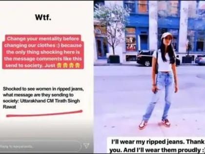 काल जया बच्चन यांची नात नव्या नवेली नंदा हिने तीरथ सिंह रावत यांच्या विधानावर तिखट प्रतिक्रिया दिली होती. शिवाय रिप्ड जीन्स घातलेला एक फोटो शेअर केला होता. ‘ Wtf, आमचे कपडे बदलण्याआधी आपले विचार बदला. मी रिप्ड जीन्स घालणार आणि अभिमानाने मिरवणार,’ असे नव्याने तिच्या इन्स्टास्टोरी पोस्टमध्ये लिहिले होते.
