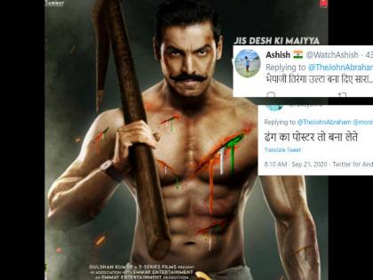 ‘ढंग का पोस्टर तो बना लेते,’ असे एका युजरने लिहिले. तर अन्य एका युजरनेही हे पोस्टर पाहून जॉनची मजा घेतली. ‘भैयाजी तिरंगा उल्टा बना दिए सारा... जलदबाजी में थे लगता है,’ असे या युजरने लिहिले. ‘सब ठीक हैं भाई मगर हरा, सफेद खून कब से आने लगा शरीर से. तिरंगा ठीक है, मगर पोस्टर की तो इज्जत करो. कितना बकवास एडिटींग लग रहीं है,’ असे एका युजरने जॉनला सुनावले.