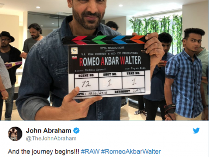 जॉनने आपल्या ट्विटर अकाऊंटवरून एक फोटो शेअर केला आहे. या फोटोला जॉनने कॅप्शनसुद्धा दिले आहे, ''यापद्धतीने झाली एका नव्या प्रवासाची सुरुवात.'' या चित्रपटाच्या निर्मितीसाठी जॉनने परमाणूचे निर्माते अजय कपूरसोबत हातमिळवणी केली आहे. अजय कपूर म्हणतात, या चित्रपटात जॉन आमच्या टीमचा हिस्सा बनला आहे या गोष्टीचा मला आनंद आहे. या चित्रपटाची कथा 1970च्या दशकातील आहे. आम्ही या चित्रपटाची शूटिंग सुरु होण्याची मोठ्या उत्सुकतेने वा़ पाहत होतो. रोब्बी ग्रेवालने या चित्रपटाची कथा लिखिली आहे. रोमियो अकबर वाल्टरची निर्मिती धीरज वर्धवन, अजय कपूर, वनेस्सा वालिया आणि गॅरी ग्रेवाल करणार आहेत. या चित्रपटात जॉन अब्राहम अभिनेत्री मौनी रॉयसुद्धा दिसणार आहे. मौनी अक्षय कुमारच्या गोल्ड चित्रपटातून बॉलिवूडमध्ये पदार्पण करते आहे. रिलीजच्या आधीच मौनीला बॉलिवूडमध्ये लॉटरी लागली असल्याचे दिसतेय.