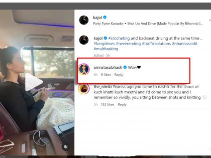 काजोलचा हा विणकाम करतानाचा व्हिडिओ व्हायरल झाला आहे. तिच्या या व्हिडिओवर अनेकांनी कमेंट केल्या आहेत. मराठमोळी अभिनेत्री अमृता सुभाषने कमेंट केली आहे. अमृताने काजोलच्या व्हिडिओवर कमेंट करत "वॉव" असं म्हटलं आहे.
