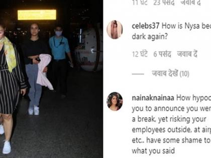 ‘तुला काय गंमत वाटतेय. अख्खा देश ब्रेक घेऊन सरकारच्या पुढील घोषणेची प्रतीक्षा करत आहेत. लोक घरात आयसोलेशनमध्ये असताना तू तुझी व तुझ्या टीमचा जीव धोक्यात घालते आाहेस. आता तरी काम बंद कर...,’ असे एका युजरने काजोल व न्यासाच्या व्हिडीओवर प्रतिक्रिया देताना लिहिले. तर अन्य एका युजरने ‘हे लोक इतके अशिक्षितासारखे कसे वागू शकतात. हिची टीम तरी जास्त सतर्क दिसतेय,’ असे लिहिले आहे.
