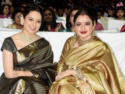 या फोटोंचे वैशिष्ट्य म्हणजे, यात कंगना ही सदाबहार अभिनेत्री रेखासोबत दिसतेय. फोटोतील दोघींचे बॉन्डिंगही पाहण्यासारखे आहे. याऊपरही एक खास बात म्हणजे, दोघींच्याही साड्या. या अवॉर्ड फंक्शनमध्ये कंगना कांजीवरम साडी नेसून आली. ही साडी खुद्द रेखा यांनी कंगनाला भेट दिलेली होती.