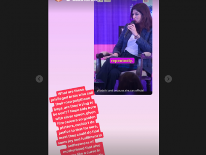 कंगनाने तिच्या इन्स्टा स्टोरीवर लिहीलं की, “सोन्याचा चमचा घेऊन जन्माला येणारी ही माणसं त्यांच्या पतींना प्लास्टिक बॅग म्हणत आहेत. असं बोलून आम्ही किती कूल आहोत हे दाखवण्याचा त्यांचा प्रयत्न आहे? चांदीच्या चमच्याने जन्मलेल्या या नेपो किड्सना, सोन्याच्या ताटात फिल्मी करिअर दिलं गेलं, पण त्यांना निश्चितपणे न्याय देता आला नाही. किमान या व्यक्तींना मातृत्वाच्या निःस्वार्थीपणाचा आनंद मिळू शकतोय. अशा व्यक्तींना नक्की काय व्हायचं आहे? भाजीपाला? स्त्रीवाद असाच आहे का?"