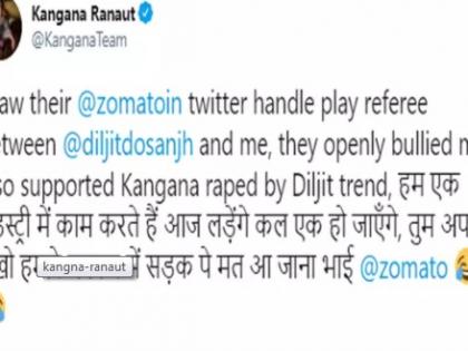 एक फूड डिलिव्हरी सर्व्हिस आपल्या व दिलजीतच्या भांडणात नाक खुपसतेय, म्हणल्यावर कंगनाची मात्र सटकली.