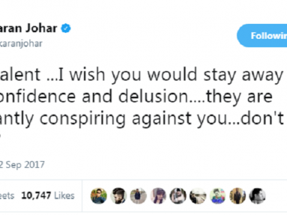‘डिअर टॅलेंट, मला वाटते की तू अतिआत्मविश्वास आणि भ्रमापासून दूर राहावे. ते कायम तुझ्याविरोधात कट रचताहेत. तुला हे दिसत नाही का?’ असे tweet करणने केले आहे. या tweetमध्ये करणने कंगनाचे नाव घेतले नाही. पण त्याचा इशारा कंगनाकडेच आहे, हे स्पष्ट आहे. पण करण कंगनाला कुणापासून सावध करू इच्छितो, हे मात्र कळायला मार्ग नाही.