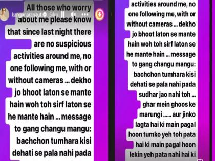 'चांगू मंगू टोळीसाठी एक संदेश आहे. तुमचा एखाद्या साध्या-भोळ्या व्यक्तीशी सामना झालेला नाही, वेळीच सुधरा नाहीतर घरात घुसून मारेन. तुम्हाला वाटत असेल की, मी पागल आहे. पण, मी किती मोठी पागल आहे, हे तुम्हाला माहित नाही...' अशी स्टोरी कंगनाने इंस्टाग्रामवर लिहिली.