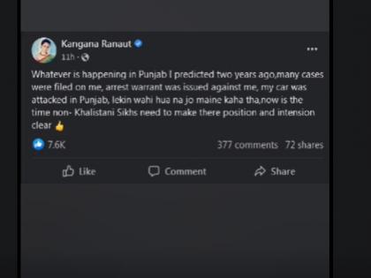 कंगनाने पोस्टमध्ये लिहिले की, पंजाबमध्ये जे काही घडत आहे, त्याचा अंदाज मी दोन वर्षांपूर्वीच वर्तवला होता. माझ्यावर अनेक गुन्हे दाखल झाले. माझ्याविरुद्ध अटक वॉरंट जारी करण्यात आले. पंजाबमध्ये माझ्या गाडीवर हल्ला झाला, पण मी जे बोललो ते घडले, पण आता खलिस्तानी नसलेल्या शिखांनी आपली भूमिका आणि हेतू सिद्ध करण्याची वेळ आली आहे.
