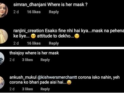 ''ती स्वतःच एक व्हायरस आहे ''अशा कमेंट्स देत तिची खिल्ली उडवली जात आहेत. तर दुसरीकडे एका युजर्सने कोरोनासाठी लावण्यात आलेले नियम काय फक्त सर्वसामान्य जनतेसाठीच आहेत का? अनेकदा मास्क न लावल्यामुळे सर्वसमान्यांकडे दंड वसूल केला जात आहे.