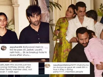 कारण 5 दिवसांआधीच रणधीर कपूर यांचे लहान बंधू राजीव कपूर यांचे निधन झाले होते. 5 दिवसांआधी घरातील सदस्याचे निधन झाले असताना कपूर कुटुंबात बर्थ डे सेलिब्रेशन होत आहे म्हटल्यावर लोकांनी नाराजी व्यक्त केली. या पार्टीला रणबीर कपूर, त्याची गर्लफे्रन्ड आलिया भट, करिना कपूर, सैफ अली खान, नीतू कपूर, संजय कपूर, आदर जैन, तारा सुतारिया, बबीता कपूर, करिश्मा कपूर, रिद्धिमा कपूर सगळे एकत्र दिसले होते. 9 फेब्रुवारीला अभिनेते, निर्माते, दिग्दर्शक राजीव कपूर यांचे आज हृदयविकाराच्या धक्क्याने निधन झाले होते. ते 58 वर्षांचे होते. रणधीर कपूर, ऋषी कपूर यांचे राजीव सर्वात धाकटे बंधू होते.