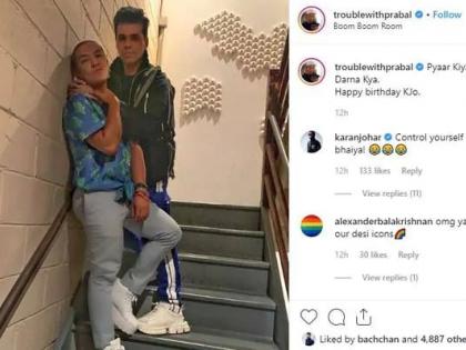 बॉलिवूडचा स्टाइलिश दिग्दर्शक, निर्माता करण जोहर याला काल (25 मे)अनेकांनी वाढदिवसाच्या शुभेच्छा दिल्यात. पण फॅशन डिझाईनर प्रबल गुरंग याने करणला वाढदिवसाच्या शुभेच्छा देणारी पोस्ट टाकली आणि भलतीच चर्चा सुरु झाली. होय, प्रबलने करणसोबतचा एक फोटो शेअर केला. सोबत एक कॅप्शन. हे कॅप्शन अनेकांनी वाचले आणि चर्चेचे पेव फुटले.