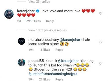 आता अनुष्का व विराटच्या मुलालाही लॉन्च करणार का? अशा शब्दांत एका युजरने करण जोहरला ट्रोल केले. अन्य एका युजरने करणला ‘नेपोटिजम का बाप आया,’ असे लिहिले तर दुस-या एकाने ‘स्टुडंट आॅफ द इअर 420’ लिहित करणला फैलावर घेतले. ‘फक्त 20 वर्षे वाट पाहा, मग तिला किंवा त्याला तू लॉन्च करू शकतोस,’ असे एका युजरने लिहिले.