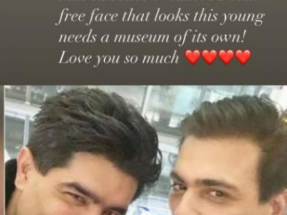 करण जोहरने इन्स्टाग्रामवर एक स्टोरी पोस्ट केली आहे. यात त्याने त्याचा आणि मनीष मल्होत्राचा एक फोटो शेअर केला. कॅप्शनमध्ये त्याने लिहले, ' गेल्या ३० वर्षांपासून माझा मित्र असलेल्या मनिषला वाढदिवसाच्या खास शुभेच्छा. माझ तुझ्यावर प्रेम आहे. मनीष जर सकारात्मकता आणि जीवन जगण्याच्या निखळ आनंदाला एक चेहरा असता तर तो तुझा असता. बोटॉक्स-मुक्त चेहरा जो इतका तरुण दिसतो, यसाठी एक स्वतःचे वेगळं संग्रहालय पाहिजे. तुझ्यावर खूप प्रेम'