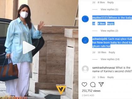 सेलिब्रिटी फोटोग्राफर विरल भयानीने करिनाचा हा व्हिडीओ शेअर केला आणि हा व्हिडीओ पाहताच सोशल मीडिया युजर्सनी करिनाला ट्रोल करणे सुरु केले. बाळ कुठेय? महिनाभराच्या बाळाला घरी एकटं सोडून ही बया फिरतेय, अशा काय काय कमेंट्स युजर्सनी दिल्यात.