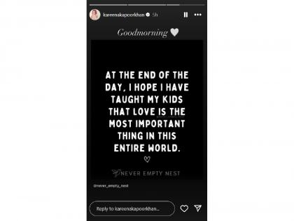 करिना अनेकदा जेह आणि तैमूरसोबतच्या पोस्ट सोशल मीडियावर शेअर करत असते. नुकतंच करिनाने एक पोस्ट शेअर केली आहे. या पोस्टमध्ये लिहलंय की "दिवसाच्या अंती मला आशा आहे की, माझ्या मुलांना मी प्रेम ही जगातील सर्वात महत्वाची गोष्ट आहे, हे शिकवण्यात यशस्वी ठरले असेल". यासोबत तिने 'गुड मॉर्निंग' लिहिले. दरम्यान, करिनाचा मुलगा तैमूर अली खानचा जन्म 2016 मध्ये झाला आणि दुसरा मुलगा जेहचा जन्म 2021 मध्ये झाला.