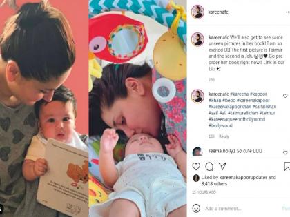 पहिल्या फोटोत करिनासोबत तैमूर असल्याचा दावा केला जातोय. या फोटोत तैमूरच्या हातात पुस्तक आहे आणि तो करिनाच्या कुशीत बसला आहे. दुस-या फोटोत जेह असल्याचा दावा केला जातोय. या फोटोत करिना आपल्या तान्हुल्याच्या माथ्याचं चुंबन घेताना दिसतेय.