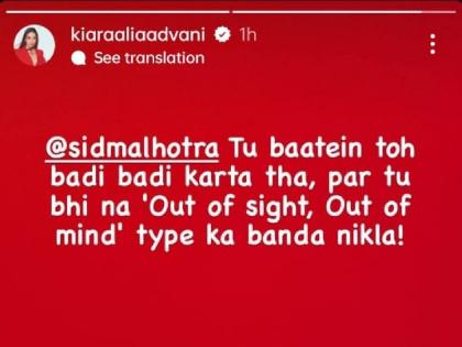 "सिद्धार्थ मल्होत्रा तू तर मोठमोठ्या बढाया मारतोस, पण, तू सुद्धा 'आऊट ऑफ साइट, आऊट ऑफ माइंड' प्रकारातसा निघालास", असं म्हणत कियाराने ही पोस्ट शेअर केली आहे.