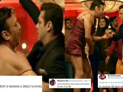 तर ‘राधे-योर मोस्ट वॉन्टेड भाई’ या सिनेमातील एका सीनमध्ये 64 वर्षीय जॅकी श्रॉफ अशा कपड्यात दिसतो, ज्याची तुम्ही आम्ही कल्पनाही करू शकत नाही. होय, सिनेमात एका गाण्यात जॅकी स्लिंकी रेड ड्रेसमध्ये नाचताना दिसतो. हे गाणे तसे सलमान व दिशा पाटनीवर चित्रीत केले गेले आहे. मात्र मध्येच जॅकी दिशाच्या शॉर्ट ड्रेसमध्ये दिसतो.या सीनमुळे आणि जॅकीच्या कपड्यांमुळे जॅकी सध्या सोशल मीडियावर ट्रोल होतोय. या सीनची आणि अशा कपड्यांची गरजच काय होती? तुझ्याकडून ही अपेक्षा नव्हती जॅकी, अशा शब्दांत लोक जॅकीला ट्रोल करत आहेत.