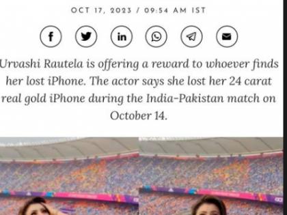 अभिनेत्री उर्वशीने आयफोन शोधून देणाऱ्याला बक्षिस द्यायचं ठरवलंय.