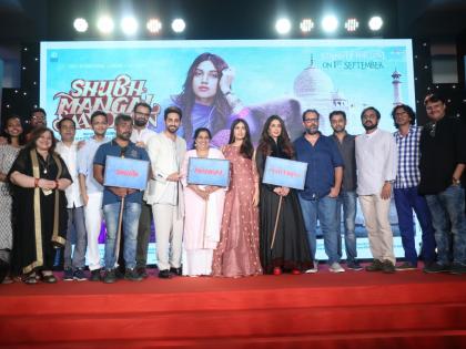 न ुकताच मुंबईत आयुषमान खुराना आणि भूमी पेडणेकर यांच्या मुख्य भूमिकेतील ‘शुभमंगल सावधान’ चित्रपटाचा ट्रेलर लाँच सोहळा पार पडला. यावेळी संपूर्ण चित्रपटाची टीम, आयुषमान खुराना आणि भूमी पेडणेकर हे देखील उपस्थित होते.