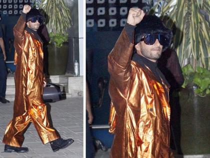त्या लूकचीही खूप चर्चा झाली. त्यानंतर आता चमचमत्या ड्रेसमध्ये रणवीर चक्क एअरपोर्टवर दिसला. गोल्डन रंगाच्या सूटमध्ये तो मुंबई एअरपोर्टवरून बाहेर पडताच सारेच थक्क झाले. रणवीरने गोल्डन सूटसह काळ्या रंगाची हाय नेक असलेली कॅपही घातली होती. अशात रणवीरचा हा पेहराव पाहून सारेच हसून हसून लोटपोट होत होते.