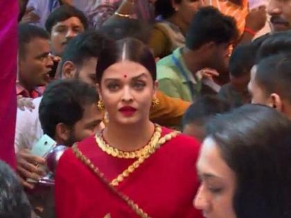 ऐश्वर्याला पाहून अनेकांनी तिच्यासोबत सेल्फी घेण्यासाठी गर्दी केली. पण ऐश्वर्या अगदी प्रसन्न चेहºयाने या गर्दीला सामोरी गेली. बाप्पाचे आशीर्वाद घेवून ती तितक्याच शांतपणे बाहेर पडली.