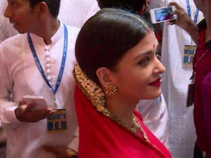 लाल गर्द रंगाची साडी नेसलेली ऐश्वर्या लालबागच्या राजाच्या मंडपात आली आणि सगळ्या नजरा तिच्याकडे वळल्या. ऐश्वर्याची एक झलक पाहण्यासाठी लोकांनी एकच गर्दी केली.सगळ्यांनाच आपल्या लाडक्या अभिनेत्रीला डोळ्यात साठवायचे होते.