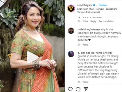 होय, माधुरीचा बदललेला चेहरा पाहून तिने बोटॉक्स केल्याचा अंदाज चाहते वर्तवत आहेत. लिप फिलर व बोटॉक्समुळे माधुरी नेहमीपेक्षा वेगळी दिसत असल्याचं सोशल मीडिया युजर्स म्हणत आहेत. झलक दिखला जाह्णच्या सेटवरचा व्हिडीओ सेलिब्रिटी फोटोग्राफर विरल भयानीने शेअर केला आहे. यात माधुरी हिरव्या रंगाच्या लहंग्यात पापाराझींना पोझ देतेय. पण हा व्हिडीओ पाहून युजर्सनी भलत्याच कमेंट्स केल्या आहेत.