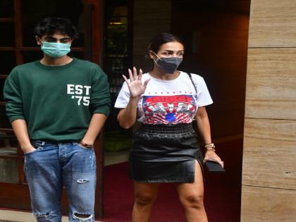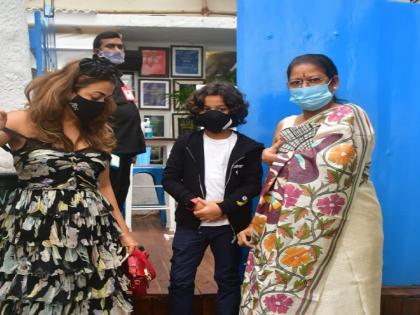 मलायकाच्या आईने लेकीसोबत पोज दिली नाही. मात्र जावई अरबाजचा निरोप घेताना ती जरा भावुक झालेली दिसली. अरबाजला बोलवून मलायकाच्या आईने त्याला मायेने जवळ बोलवले शिवाय तितक्याच मायेने गालाचे अतिशय मायेने चुंबन घेतले. हा सुंदर क्षण पापाराझींच्या कॅमे-यात कैद झाला नसेल तर नवल. यावेळी मलायकाने ब्लॅक स्कर्ट व व्हाईट टी-शर्ट, शिवाय रेड बूट घातले होते.