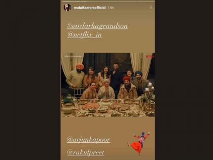 अर्जुन कपूर आणि रकुल प्रीत सिंगचा आगामी चित्रपट सरदार का ग्रॅण्डसनची घोषणा केली आहे. दरम्यान मलायका अरोराने बॉयफ्रेंड अर्जुन कपूरला चिअर करत चित्रपटाच्या सेटवरील एक फोटो शेअर केला आहे आणि रकुल प्रीत सिंग आणि अर्जुन कपूरला टॅग केले आहे. मलायका अरोराची ही पोस्ट सोशल मीडियावर व्हायरल होताना दिसते आहे.