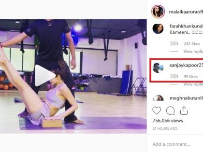 बॉलिवूड अभिनेत्री मलायका अरोरा हिने सोशल मीडियावर पोस्ट केली अन् ती व्हायरल झाली नाही, हे शक्यच नाही. सोशल मीडियावर कमालीची अॅक्टिव्ह असलेली मलायका रोज नवे फोटो, व्हिडीओ शेअर करत असते. सध्या तिने शेअर केलेला एक व्हिडीओ चर्चेत आहे. होय, मलायकाने एक योगा व्हिडीओ इन्स्टाग्रामवर शेअर केला आहे. यात मलायका एक कठीण आसन करताना दिसतेय. खरे तर मलायकाच्या प्रत्येक फोटो व व्हिडीओवर अर्जुन कपूरची कमेंट अपेक्षित असते. पण यावेळी मलायकाच्या या हॉट व्हिडीओवर अर्जुन नाही तर त्याच्या काकांनी कमेंट केली आहे. होय, अभिनेते संजय कपूर मलायकाच्या या व्हिडीओवर कमेंट करण्यापासून स्वत:ला रोखू शकले नाहीत.