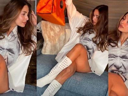 ओव्हर साईज शर्ट घालून मलायका अरोराने केले स्टायलिश फोटोशूट, फोटो क्षणात झाले व्हायरल