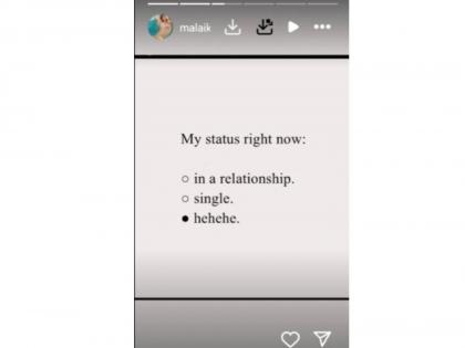 यामध्ये आता माझं स्टेटस असं लिहिलं असून रिलेशनशिप, सिंगल आणि hehehe असे तीन पर्याय दिल्याचं दिसत आहे. मलायकाने रिलेशनशिमध्ये किंवा सिंगल यावर टिक न करता तिने hehe या ऑप्शनवर टिक केल्याचं दिसत आहे. मलायकाची ही इन्स्टास्टोरी व्हायरल झाली आहे.