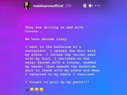 मलायकाने अलीकडेच इन्स्टाग्राम स्टोरीजवर दोन मजेदार किस्से शेअर केले आहेत.यामध्ये तिने कोविड -19 ची लस घेतल्यानंतर घरी येणाऱ्या सर्व पाहुण्यांना काय बोलते ते सांगितले आहे. मलायकाने लिहिले, 'जेव्हा पाहुणे घरी यायचे, तेव्हा मी त्यांना म्हणायचे, घाबरू नका, आमच्या कुत्र्याचं लसीकरण केले आहे. आता मी त्यांना सांगतो, घाबरू नका, आम्हीसुद्धा व्हॅक्सिनेशन घेतलं आहे. '