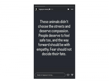 मनोज वाजपेयी यांनी आपल्या इन्स्टाग्राम अकाउंटवर एक स्टोरी शेअर केली. ज्यात त्यांनी लिहिले की, "या प्राण्यांनी स्वतःहून रस्ते निवडलेले नाहीत, त्यामुळे ते दयेला पात्र आहेत. तसेच लोकांनाही सुरक्षित वाटण्याचा अधिकार आहे. त्यामुळे पुढे जाण्याचा मार्ग हा सहानुभूतीचा असावा. भीतीमुळे त्यांचे भवितव्य ठरवले जाऊ नये". मनोज वाजपेयीं यांच्या या विधानातून त्यांनी दोन्ही बाजूंचा विचार केल्याचे दिसून येते. त्यांनी केवळ प्राण्यांच्या हक्कांविषयीच नाही, तर लोकांच्या सुरक्षिततेचाही मुद्दा मांडला.